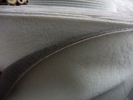 Automobil- Schaumstoff, grau (Polyurethan) beide Seiten kaschiert mit weißen und meliertem